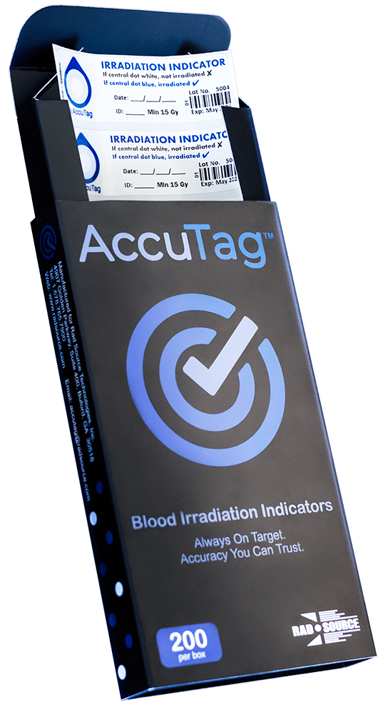 The AccuTag™ indicator is designed to confirm that the blood product has received at least 15 Gy when you’re targeting a 25 Gy dose, helping you meet FDA standards and keep your protocols on track.